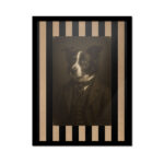 Un retrato con carácter y humor sutil: este Border Collie vintage aparece vestido como un caballero del siglo XIX, impreso en tonos sepia para evocar la estética de los antiguos estudios fotográficos. La pieza mide 30×40 cm, está montada sobre paspartú hecho a mano y enmarcada en madera negra con frente de vidrio, logrando una presentación elegante, duradera y lista para colgar.