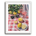 “Picnic Mediterráneo” captura la esencia de una tarde relajada al aire libre, con detalles que evocan frescura y alegría. Este cuadro muestra un mantel de cuadros rosados y blancos, adornado con limones, copas de vino rosado y gafas de sol, enmarcado por un fondo de hojas verdes. Perfecto para decorar cocinas, comedores o terrazas, esta obra transmite la energía cálida del verano y la sencillez elegante de los momentos compartidos. Impreso con materiales de alta calidad, asegura colores vibrantes y duraderos.