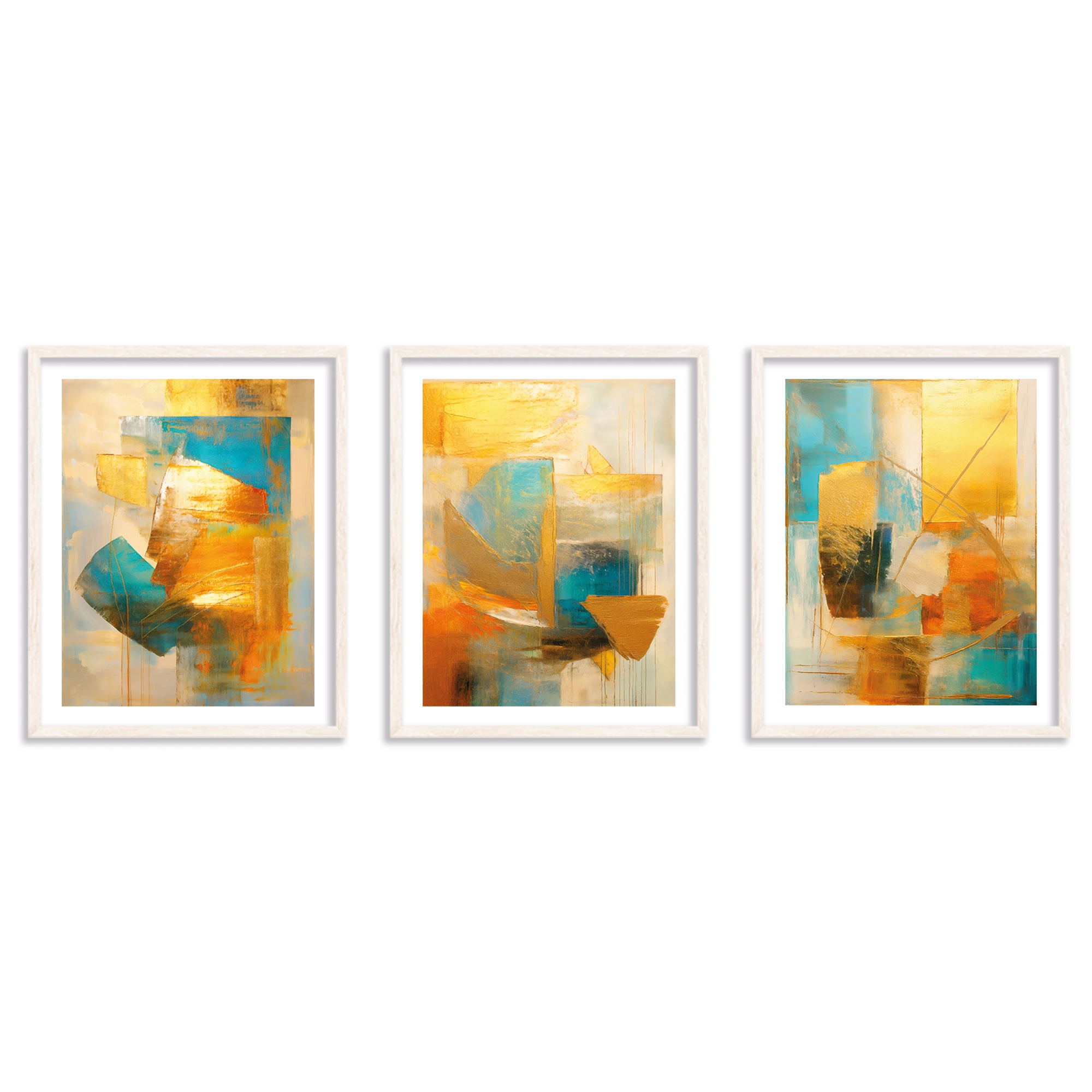 Resplandor Dorado es un tríptico abstracto que captura la esencia de la luz y el movimiento con una impresionante combinación de tonos dorados, azules y naranjas. Su composición geométrica y sus pinceladas metálicas crean una sensación de profundidad y energía, convirtiéndolo en una pieza decorativa de gran impacto visual. Perfecto para salones, oficinas o espacios modernos que buscan un toque de sofisticación y exclusividad, este conjunto de cuadros ilumina cualquier ambiente con su elegancia y su juego de colores vibrantes. Fabricado con materiales de alta calidad, Resplandor Dorado es una obra de arte contemporánea que transformará tu espacio con un estilo único y cautivador.
