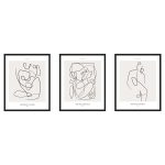 En ‘Abstract Figures 1’, se destacan las formas curvas y la gracia femenina, mientras que ‘Abstract Figures 3’ resalta la belleza de la figura femenina. En el centro de la serie, ‘Abstract Figures 2’ captura un momento íntimo con una pareja compuesta por un hombre y una mujer, en el acto de besarse. Esta obra enfatiza la sensualidad y la conexión entre los sujetos, utilizando formas fluidas y líneas suaves para transmitir la intimidad del momento. A través de un estilo artístico abstracto y expresivo, estas obras celebran la diversidad de relaciones y expresiones humanas, manteniendo un enfoque en la sensualidad.
